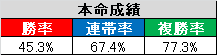 勝率45%、連帯率67%、複勝率は脅威の77%。