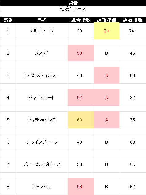 今回のメンバーではフィールシンパシー、アルジーヌ、アリスヴェリテが1600mにおける持ち時計上位の3頭です。この3頭は今の札幌芝を味方につける可能性が高いです。