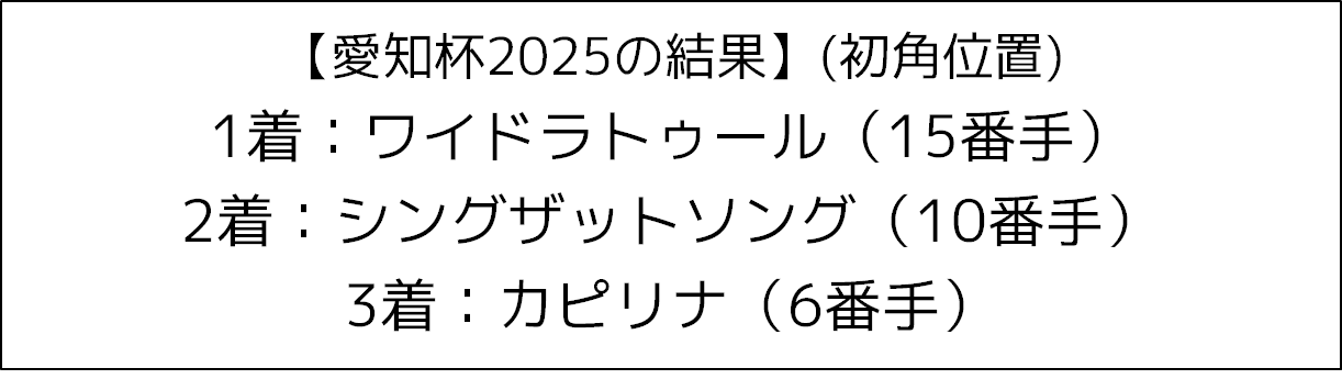 実際に初めて中京芝1400での開催となった昨年は、典型的な差し追い込み決着で、前に行った馬はノーチャンスと言っていい展開になっていました。