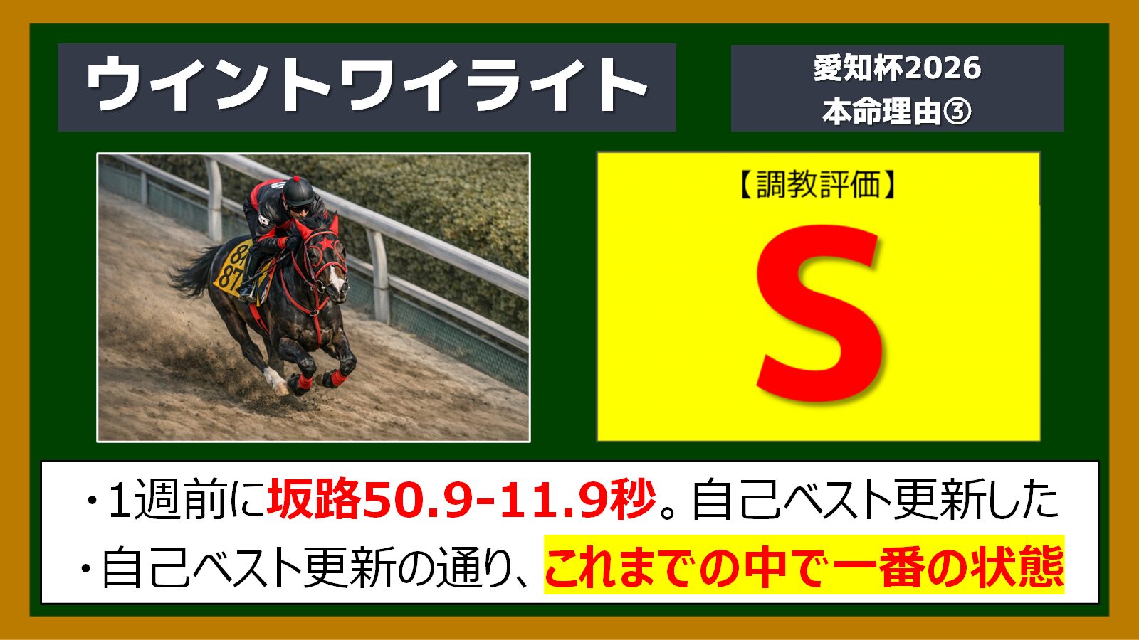 愛知杯、自信の本命はウイントワイライトです!