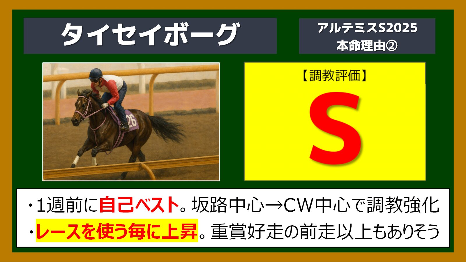 アルテミスステークス、自信の本命はタイセイボーグです!