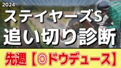前走で南W6ハロン79.6秒という速い時計を出すなど、かなり攻めた調教をしていたせいか、去年よりも状態的にギリギリな印象を受けます。