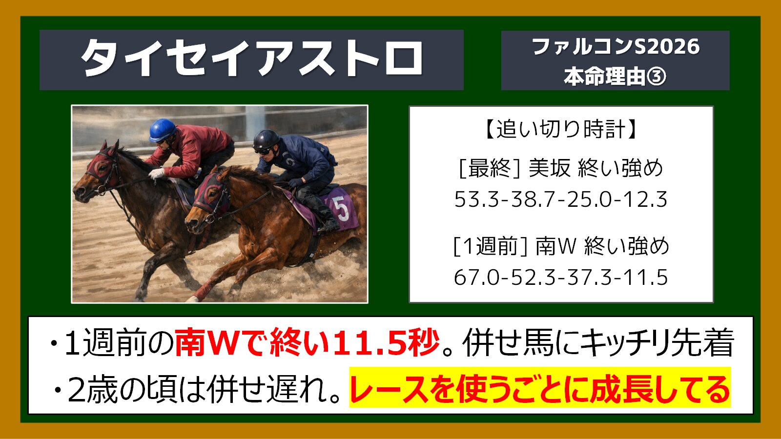 ファルコンステークス、自信の本命はタイセイアストロです!