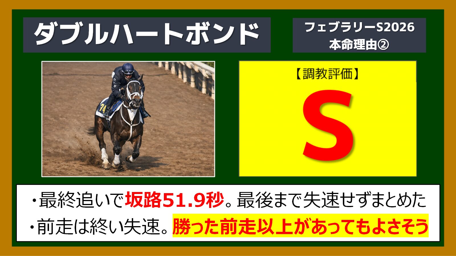 フェブラリーステークス、自信の本命はダブルハートボンドです!