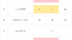| 2番手 | 3- 7- 7- 66/ 83 | 3.6% | 20.5% | 23 | 90 |