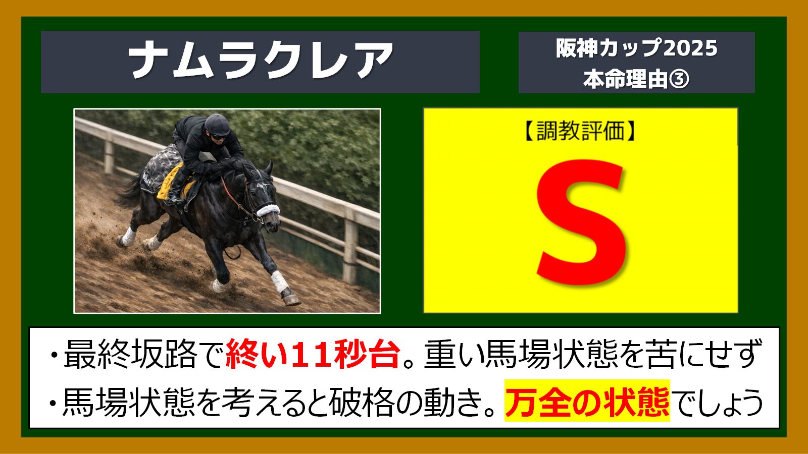 そこで本命にしたのがナムラクレアですが、この馬は追い切りの内容も申し分ありません。