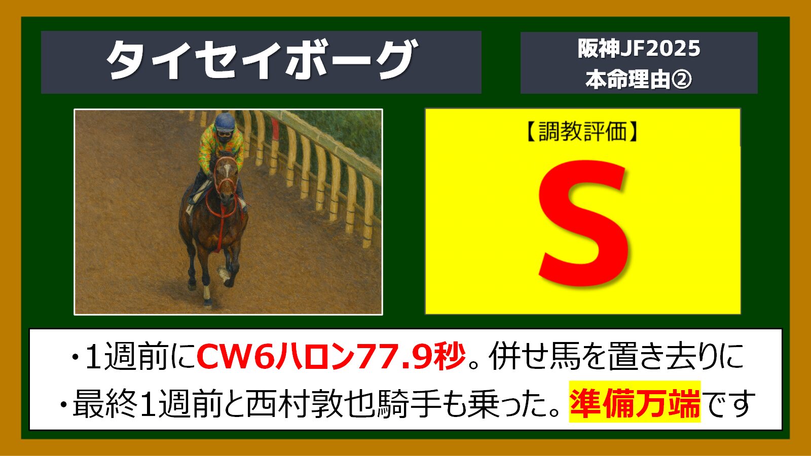 阪神ジュベナイルフィリーズ、自信の本命はタイセイボーグです!