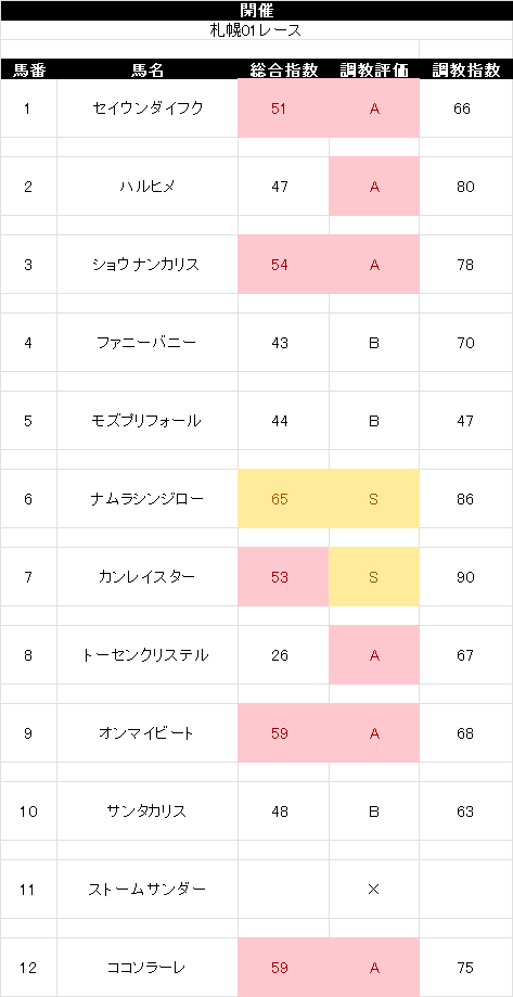7月5日の平場調教推奨馬+オリジナル出馬表