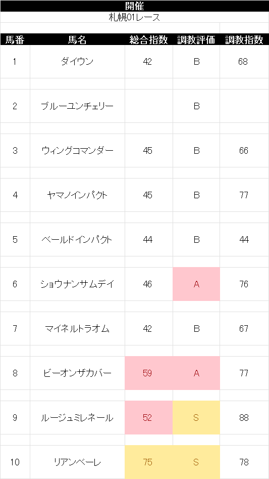 9月1日の調教推奨馬、全レースのオリジナル出馬表を公開!