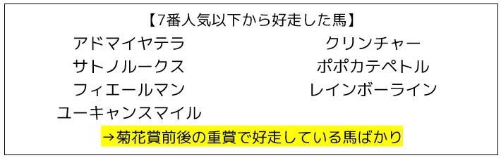 7番人気以下から好走した馬を見ても、この後に活躍する馬や前走で好走していた馬のに何故か人気がなかった馬たちで、このレースをマグレで好走したというわけではありません。