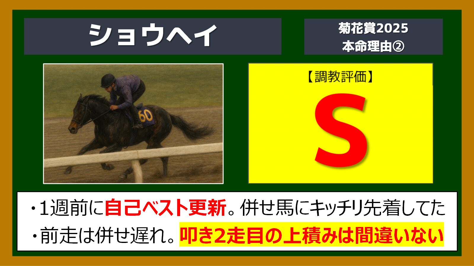 菊花賞、自信の本命はショウヘイです!