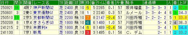 | 2500m~ | 1- 0- 0- 4/ 5 | 20.0% | 20.0% | 330 | 76 |
