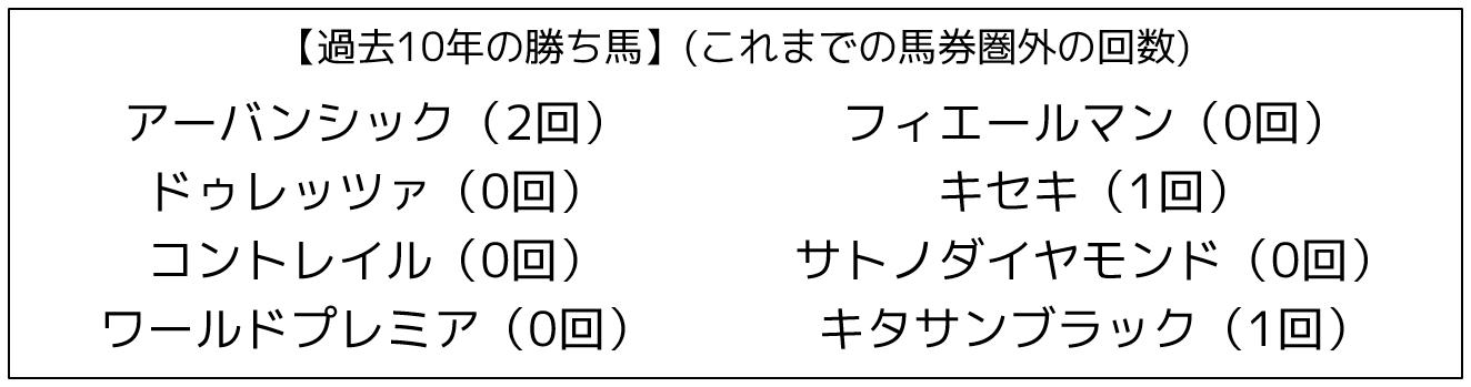 これまで3回以上、馬券圏外になっている馬は過去8年で勝っていません。