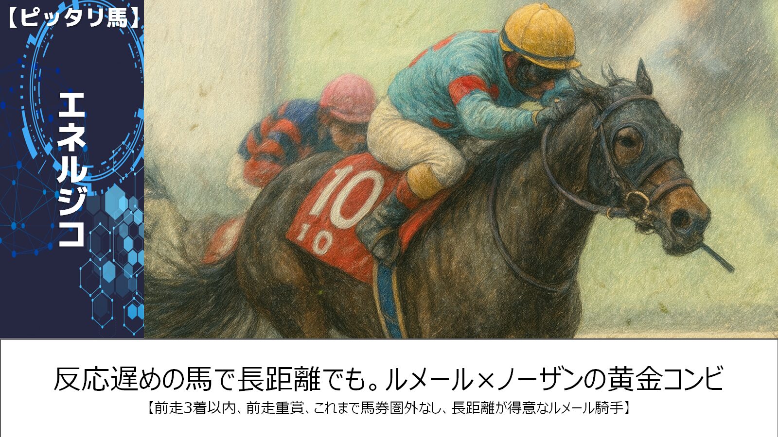 というわけで今年の菊花賞にピッタリの馬は、エネルジコではないかと思います。