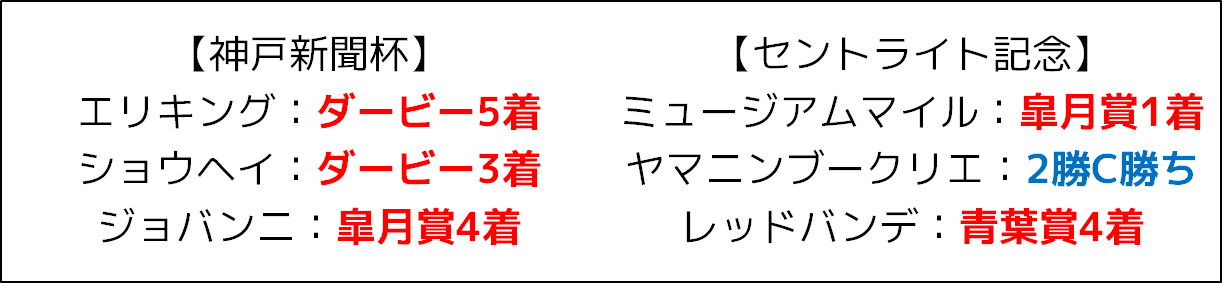 世代G1というのは、この後もG1で活躍する馬と、3勝クラスやOPEN特別を中心に走っていく馬が一緒に走る、能力差の大きいレースです。それだけの能力差があれば展開やトラックバイアスなどを跳ね除け、どんな形でも能力上位の馬が好走してくる確率が高いというわけです。
