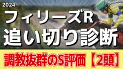 1週前には全体80秒を切るタイムも出すなど、明らかに前走以上の仕上がりを見せています。南W3ハロン36秒台が出るというのも巴賞以来のことで、叩き2走目の上積みは間違いないでしょう。