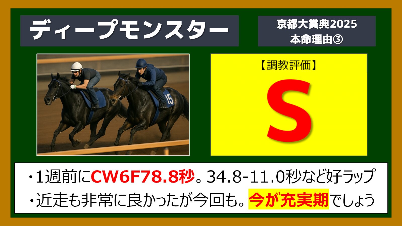 ディープモンスターは、追い切りの内容も申し分ありません。