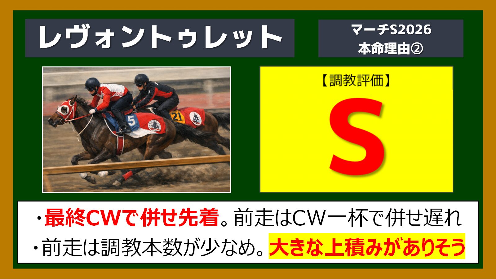マーチステークス、自信の本命はレヴォントゥレットです!