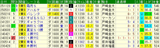 | 明け4戦~ | 177- 188- 151- 1349 | 9.5% | 27.7% | 83 | 86 |