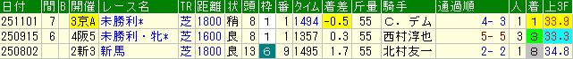 | 3F 2位 | 1- 2- 0- 3/ 6 | 16.7% | 50.0% | 113 | 145 |