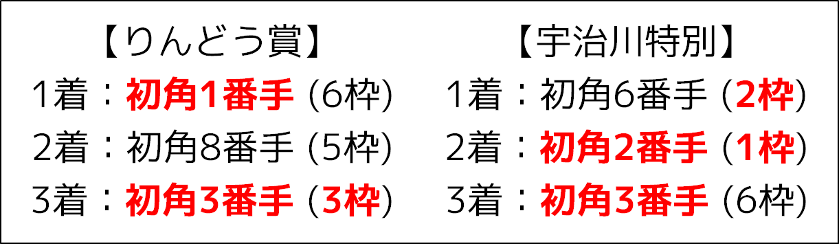 まず今開催の京都芝1400m外回りにおけるレース結果を見ると、先週のりんどう賞はラスティングスノーの逃げ切り。今週の宇治川特別も典型的な内前での決着という感じで、今の京都芝は全体的に内枠有利、前有利の傾向が強くなっています。