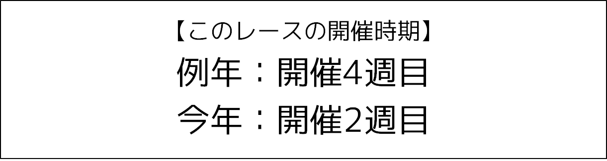 馬場状態やスプリンターの出走が例年より少なくペースが上がりにくいことなどを考えると、今年のこのレースは前有利、内枠有利になる可能性が高いでしょう。