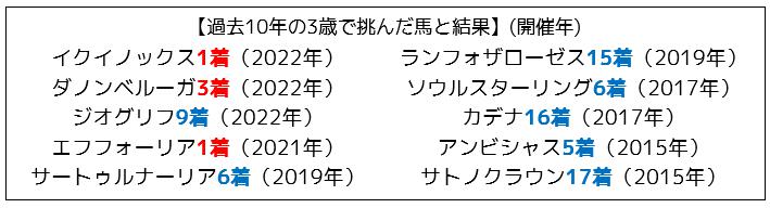 今年の3歳は、世代重賞で結果を残してきた馬が非常に強いという世代で、条件戦で圧勝した馬などをアッサリ退けていました。